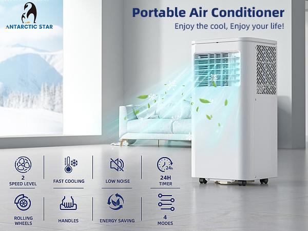 🎉New Year Mega Sale💥Antarctic Star Portable Air Conditioner 8000 BTU (ASHRAE), Remote Control, Fan Mode, Cools 250sq.ft, 24 Hour Timer, Quiet Operation, 2 Fan Speed for Bedroom Office Home Dorm.smartliving